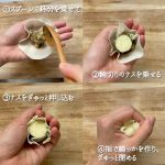 上からぎゅっと押しつけ、餃子の皮の端を中央に集めるようにして閉じる。